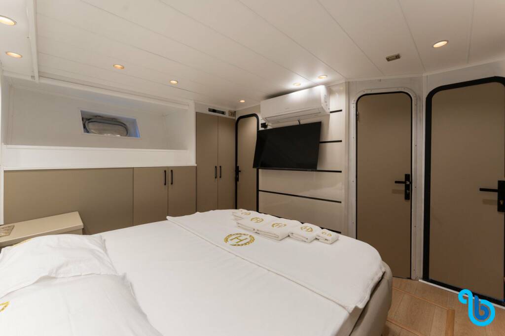 Yate de lujo a motor Beyefendi H Beyefendi H, construido en 1988 está anclado en Turquía. Tiene 4 cabinas, puede acomodar 8 personas.