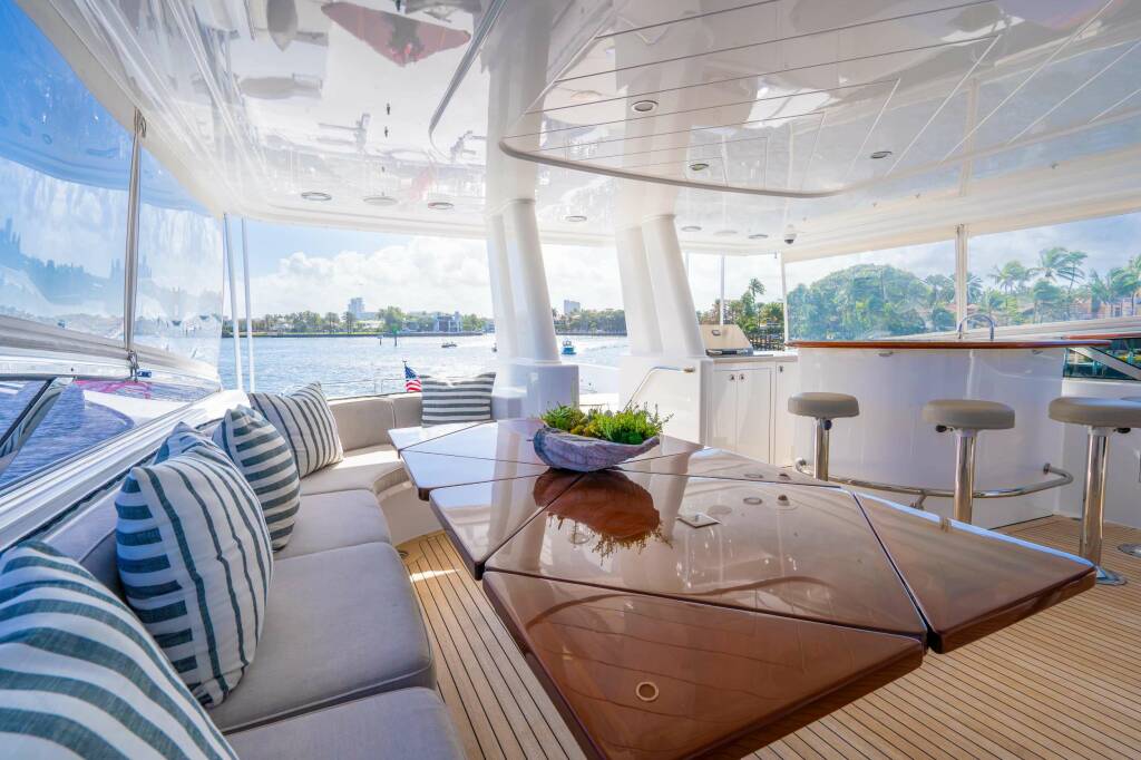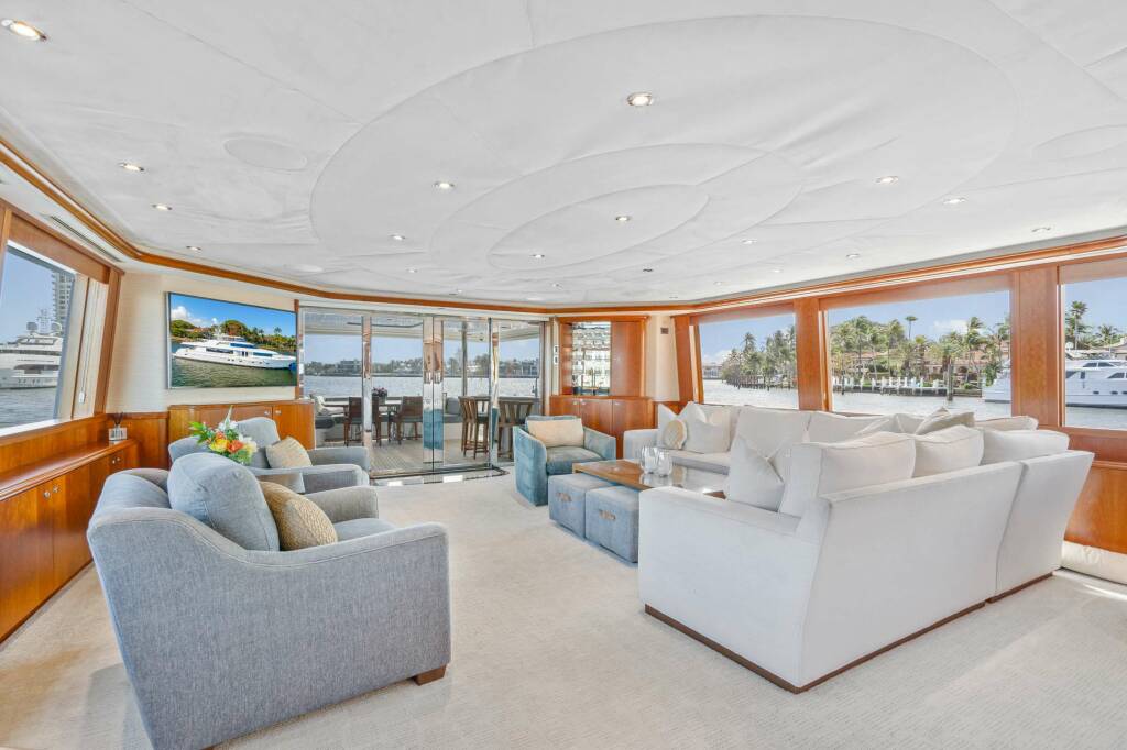 Yate de lujo a motor SLEEPOVER, construido en 2008 está anclado en Bahamas, USA - Florida East Coast. Tiene 4 cabinas, puede acomodar 8 personas.
