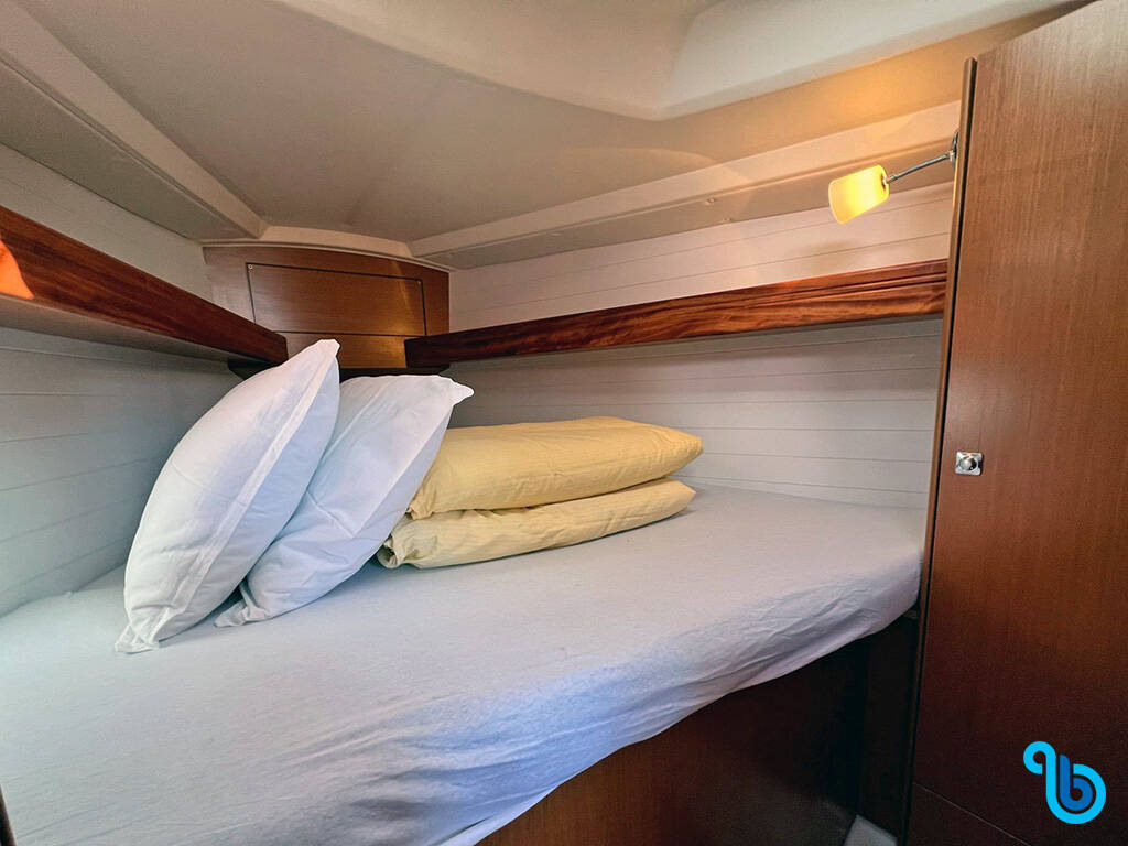 "Barca quattro cabine (con armatoriale e pullman) due bagni. Non ha inverter ed è sprovvista di presa accendisigari. Per la 220 è necessario generatore portatile o inverter attaccato alle batterie"