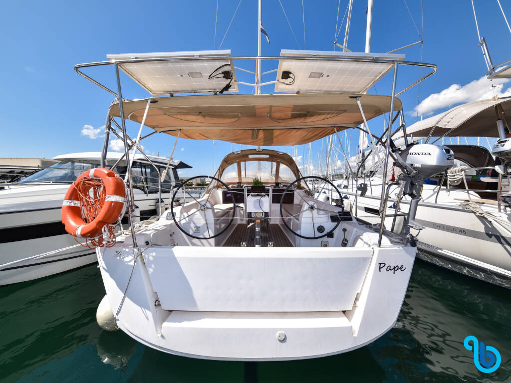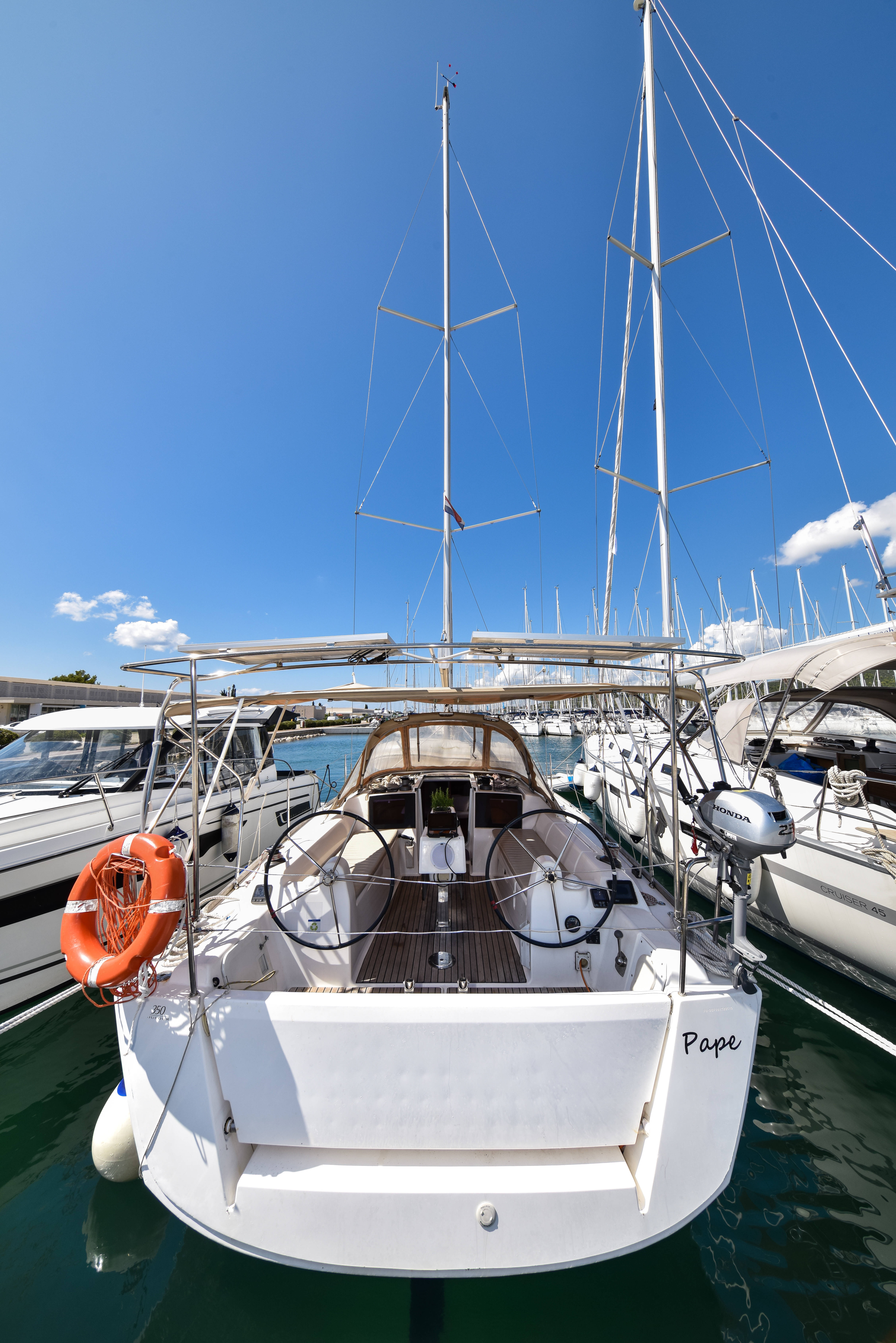 Il Dufour 350 Grand Large PAPE (Barca a vela), è stato varato nel 2015 ed è basato in Croazia - Zara della città di Sukosan, Dalmacija. Lo scafo è allestito con 3 cabine e 1 wc ed è omologato per ospitare comodamente 6 + 2 persone.
