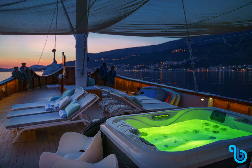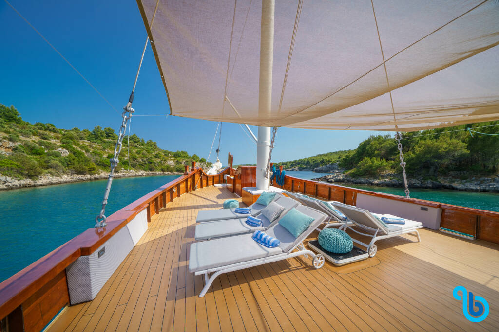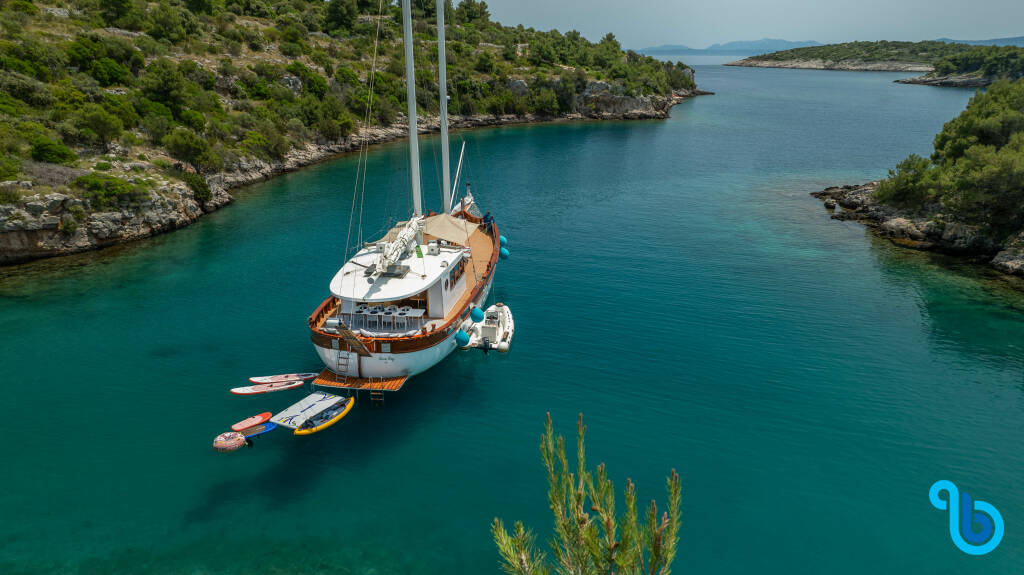 Presentiamo Ardura Ardura: Caicco varato nel 2019 e basato in Croazia. L'allestimento interno con 6 cabine, puo' ospitare comodamente 12 ospiti.