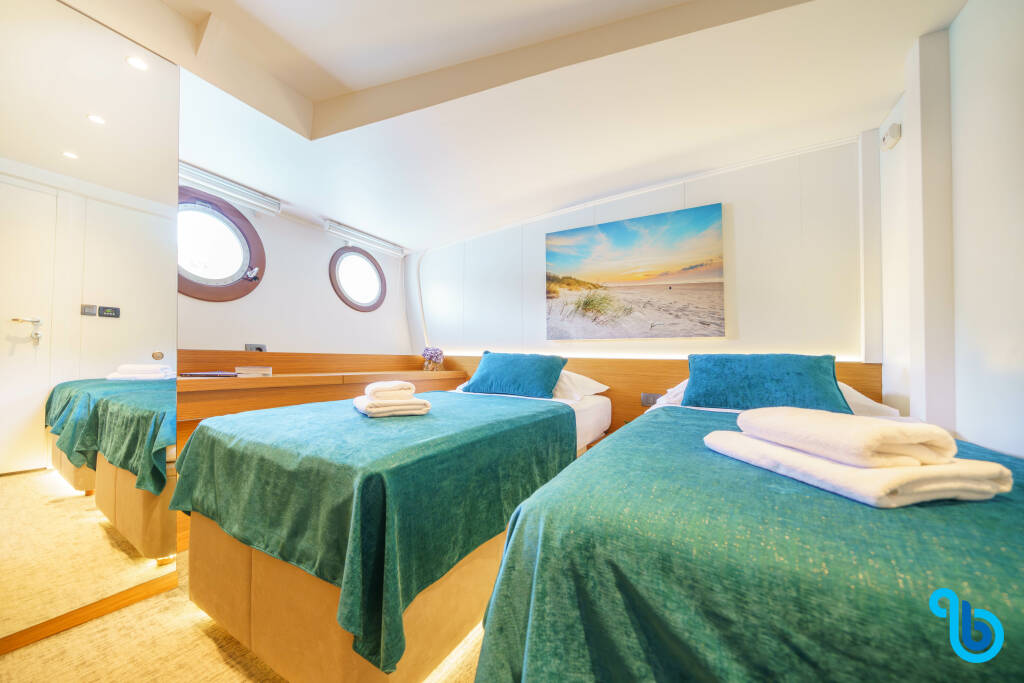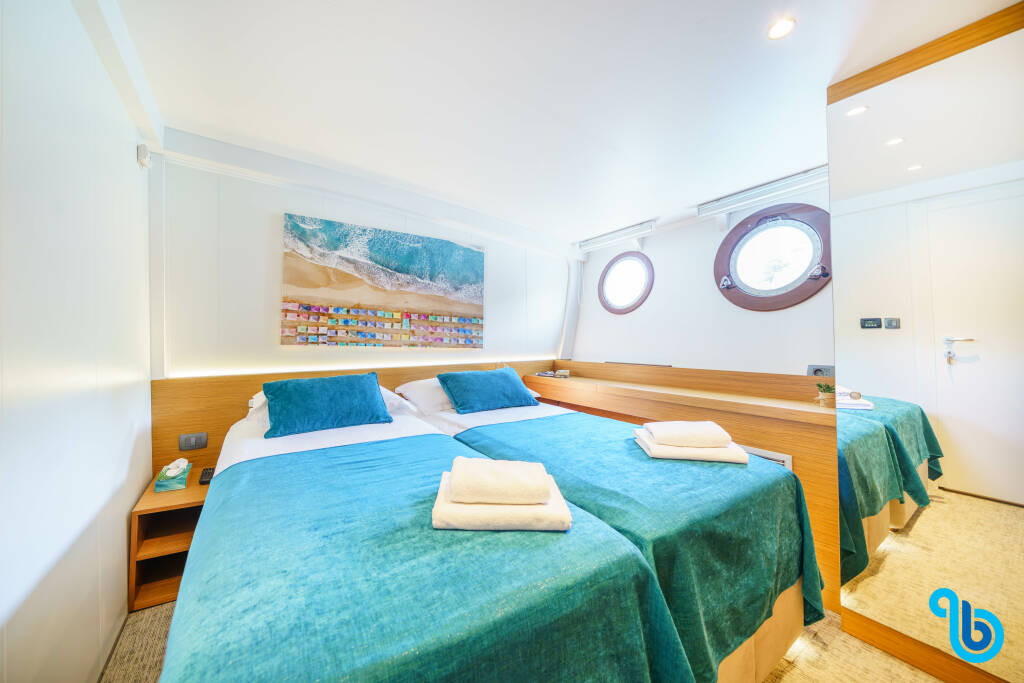 • Catamarano per ampi spazi, stabilità superiore e maggiore privacy.