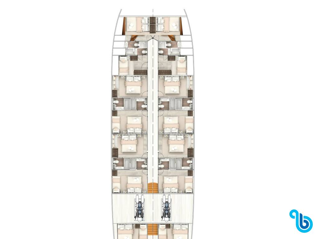 • Catamarano per ampi spazi, stabilità superiore e maggiore privacy.