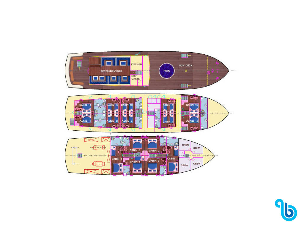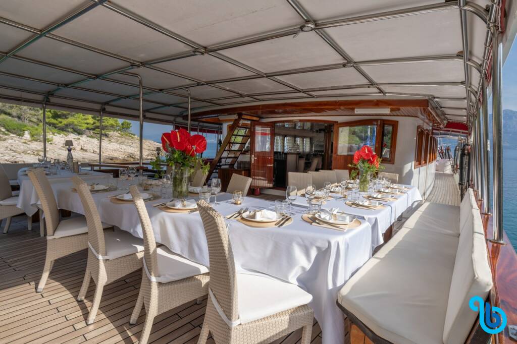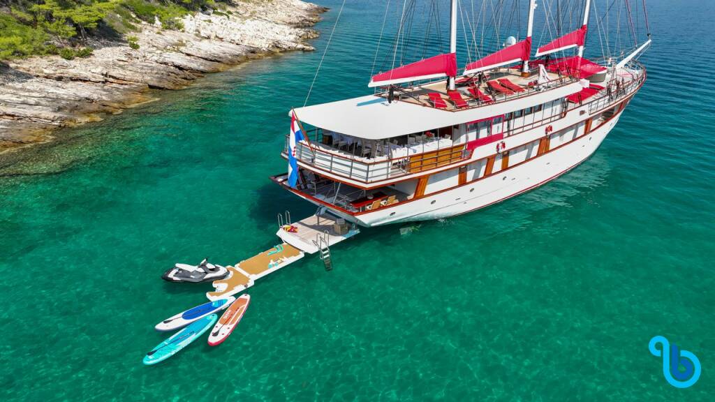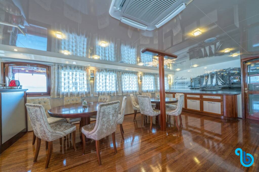 Presentiamo Barbara MY Barbara: Caicco varato nel 2006 e basato in Croazia. L'allestimento interno con 16 cabine, puo' ospitare comodamente 32 ospiti.