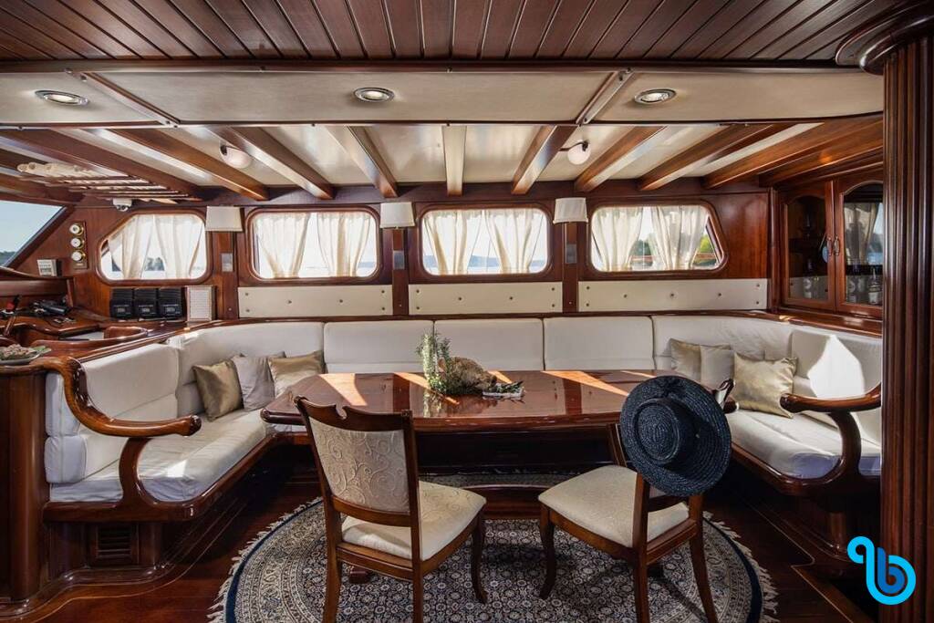 Presentiamo Nostra Vita Nostra Vita: Caicco varato nel 2005 e basato in Croazia. L'allestimento interno con 5 cabine, puo' ospitare comodamente 10 ospiti.