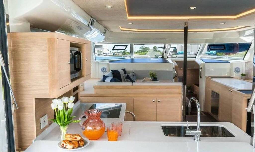 Presentiamo Moka: Catamarano di lusso varato nel 2024. L'allestimento interno con 3 cabine, puo' ospitare comodamente 6 ospiti.
