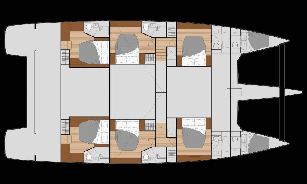 Presentiamo Bliss: Catamarano di lusso varato nel 2025. L'allestimento interno con 5 cabine, puo' ospitare comodamente 10 ospiti.