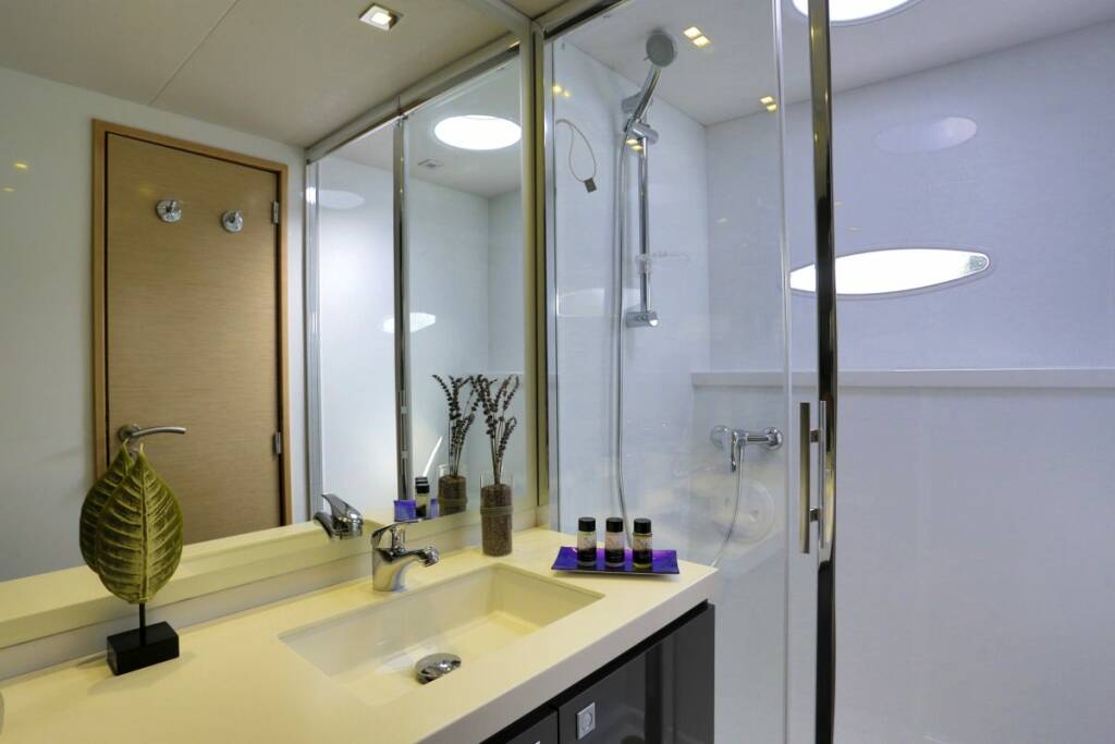3 Queen size cabins with ensuite bathroom - TV, DVD, bluetooth speaker, individual a/c control - vacuum toilets - dry shower