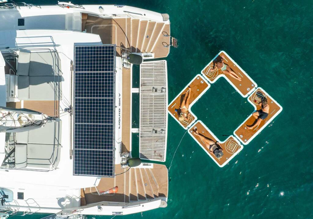 Presentiamo LIQUID SKY: Catamarano di lusso varato nel 2024. L'allestimento interno con 3 cabine, puo' ospitare comodamente 6 ospiti.