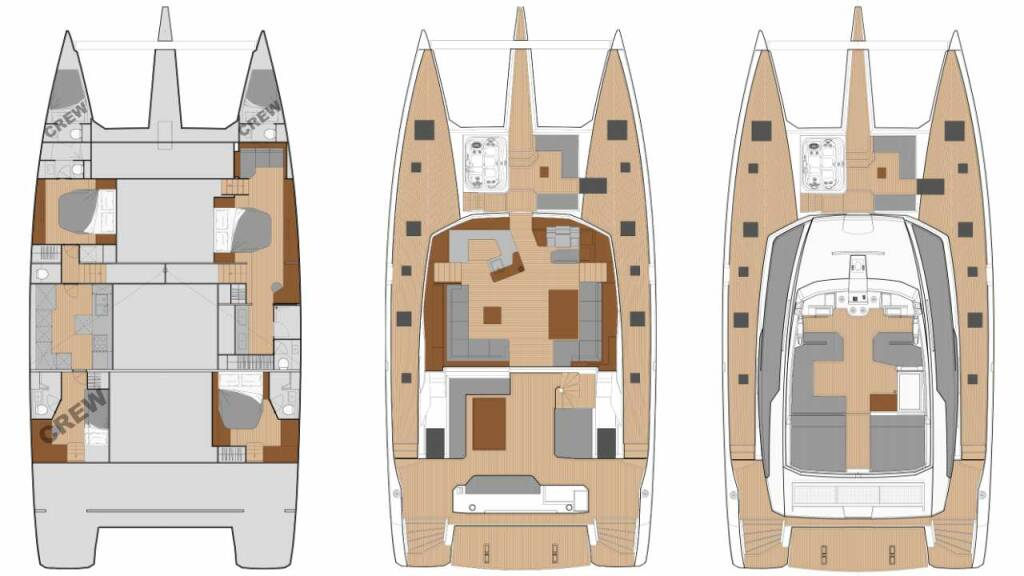 • Catamarano per ampi spazi, stabilità superiore e maggiore privacy.
