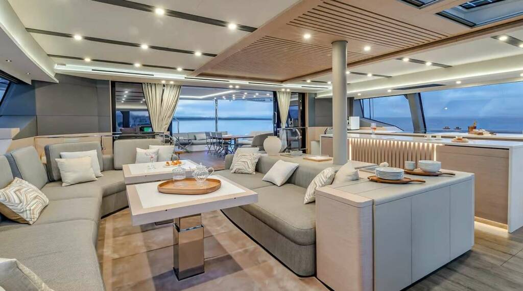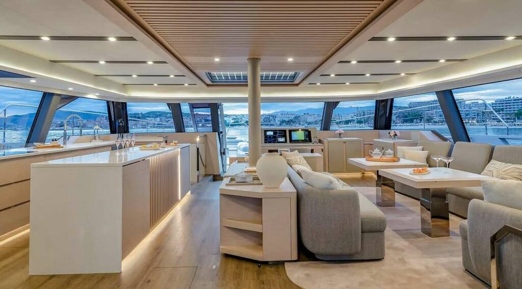 Presentiamo SOL MADININA: Catamarano di lusso varato nel 2025. L'allestimento interno con 5 cabine, puo' ospitare comodamente 10 ospiti.