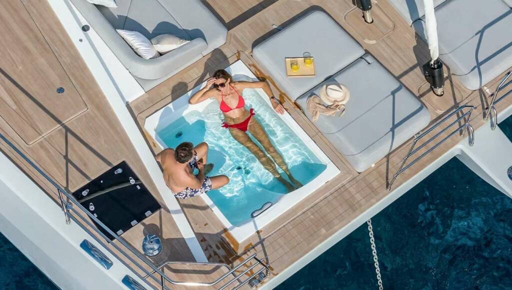 • Catamarano per ampi spazi, stabilità superiore e maggiore privacy.