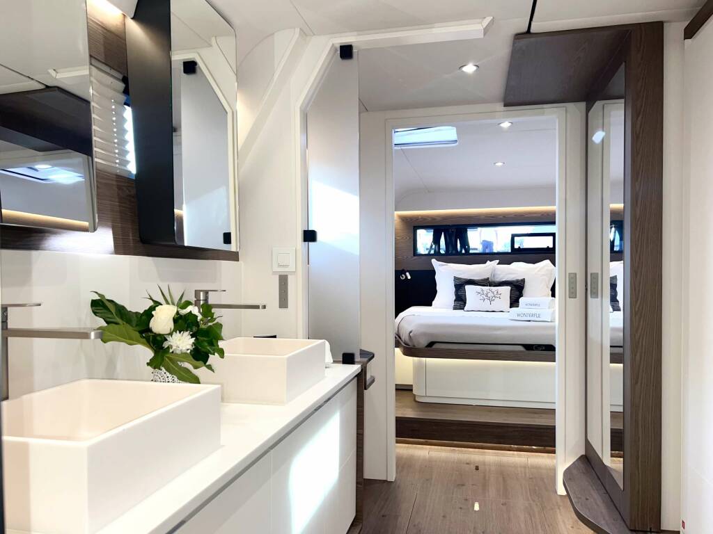 Presentiamo WONDERFUL: Catamarano di lusso varato nel 2023. L'allestimento interno con 4 cabine, puo' ospitare comodamente 8 ospiti.