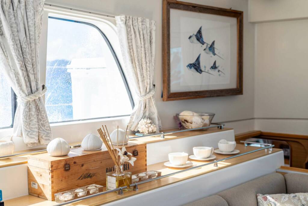 Accommodation: Gambit offers sleeping accommodations for 6 guests in 3 queen size cabins and 1 twin bunk room (suitable for kids/teens). All offer AC and ensuite head and shower.