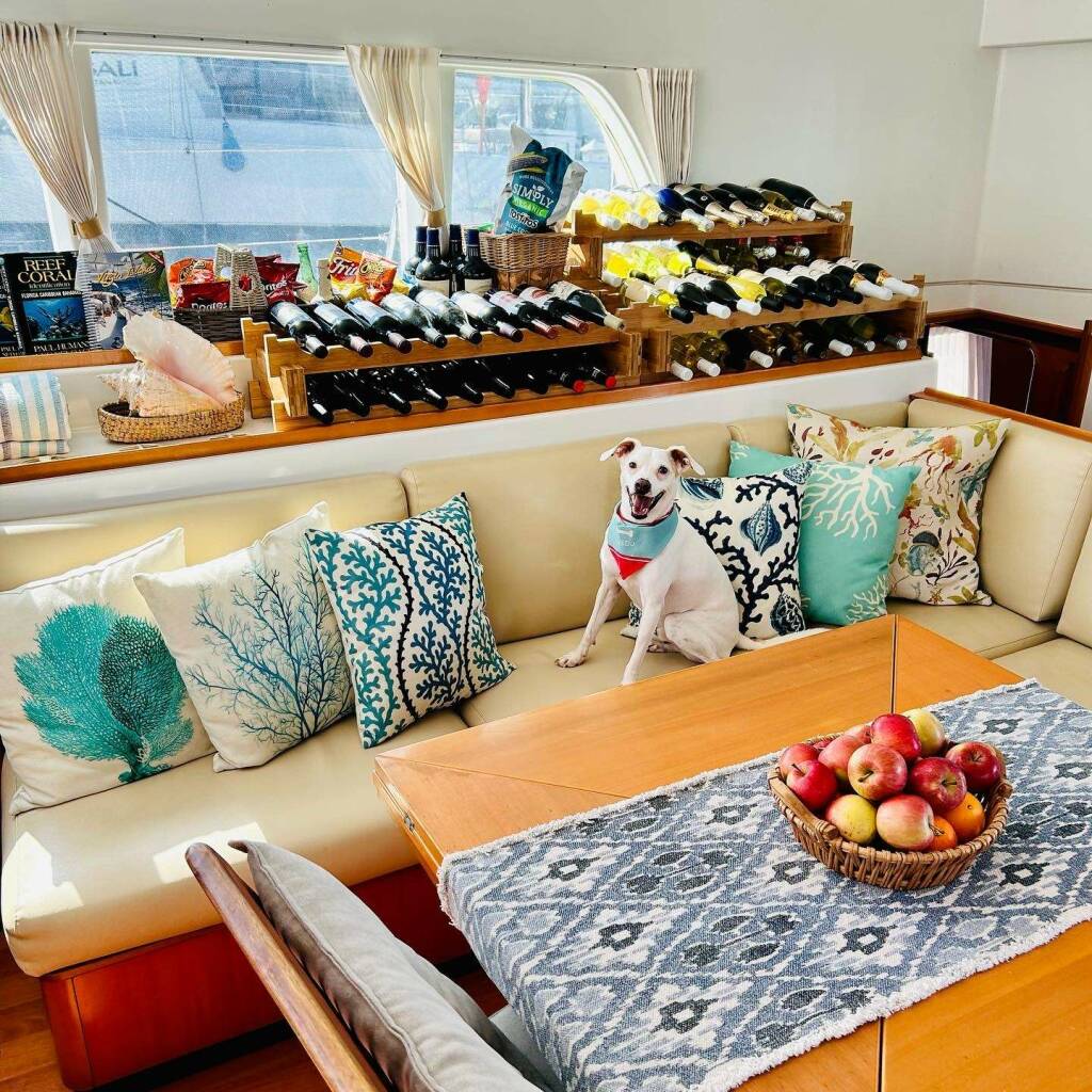 We use marine/reef friendly dish soap and cleaning products for the interior and exterior of the yacht.\