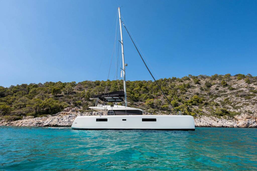 Presentiamo QUEEN OF DIAMONDS : Catamarano di lusso varato nel 2014. L'allestimento interno con 5 cabine, puo' ospitare comodamente 10 ospiti.