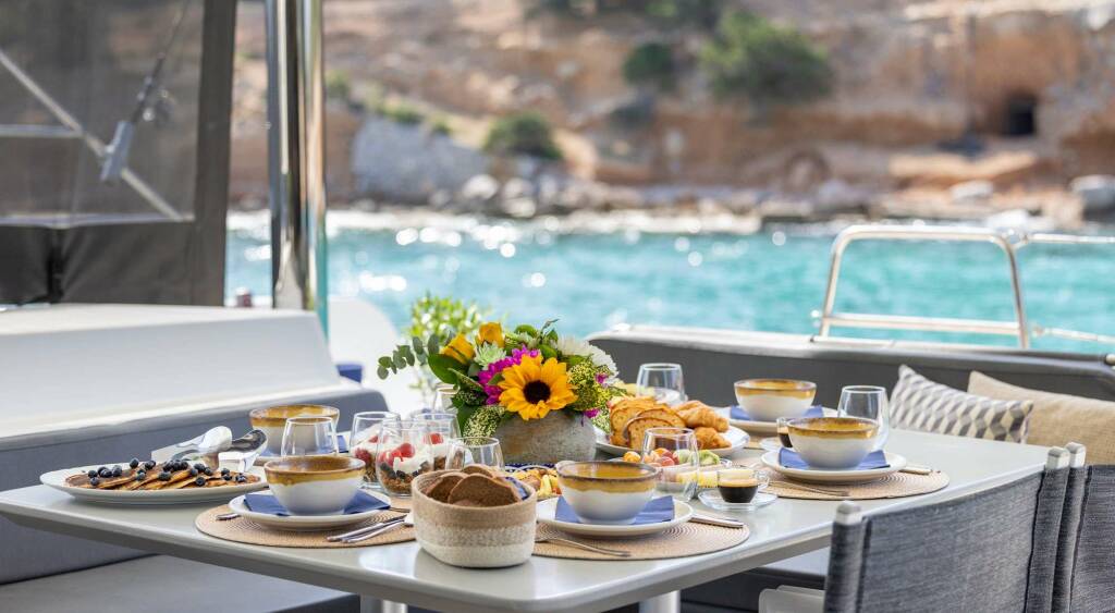 * Please note that, due to logistics, charters with embarkation or disembarkation in Santorini will be charged one extra day.