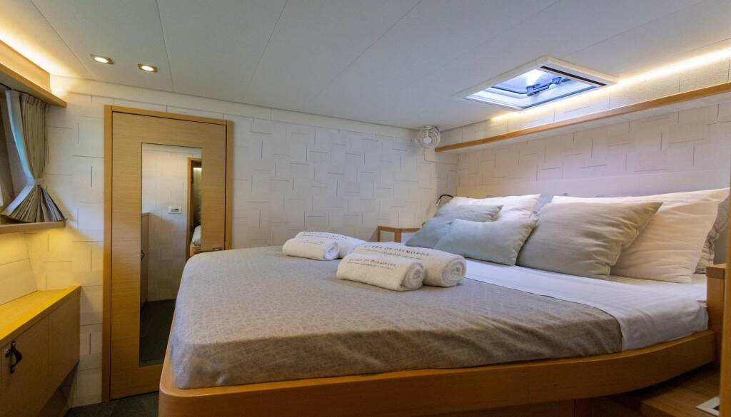 Accommodation: 1 Master cabin with queen bed, 3 Double cabins with queen beds and 1 cabin with bunk beds.