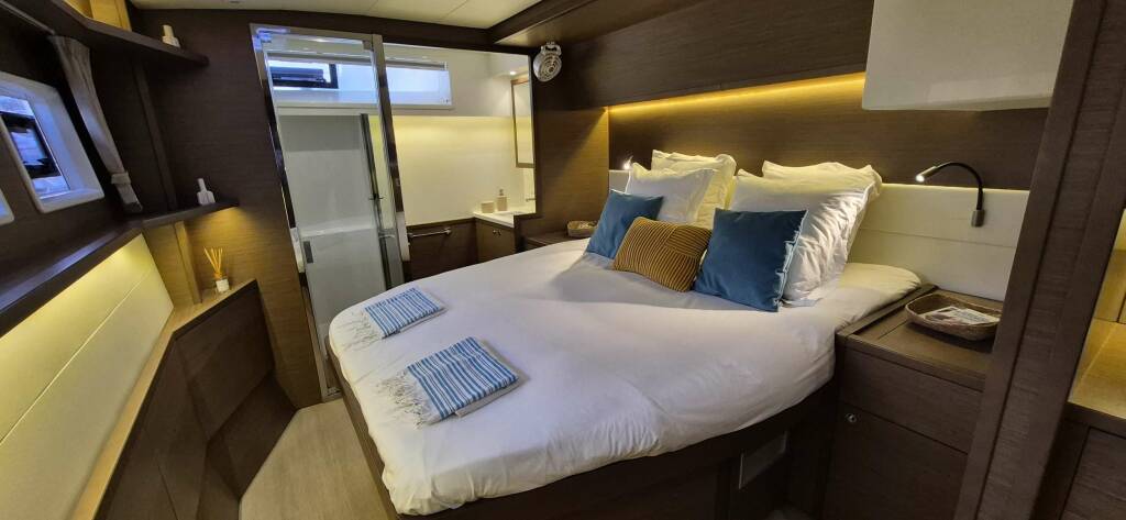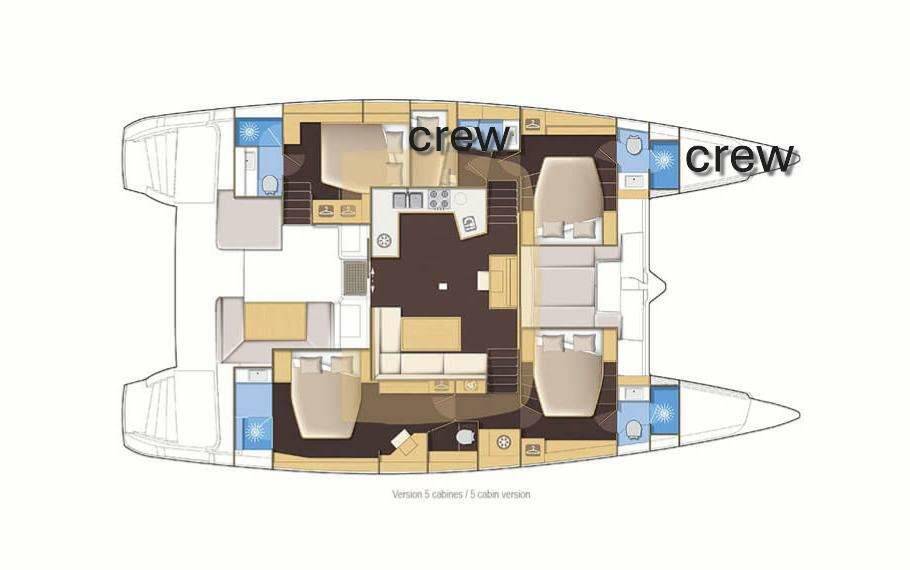 Accommodation: Sérénité can accomodate up to 8 guests in 4 double ensuite cabins : 1 with queen size bed & 3 doubles cabins.