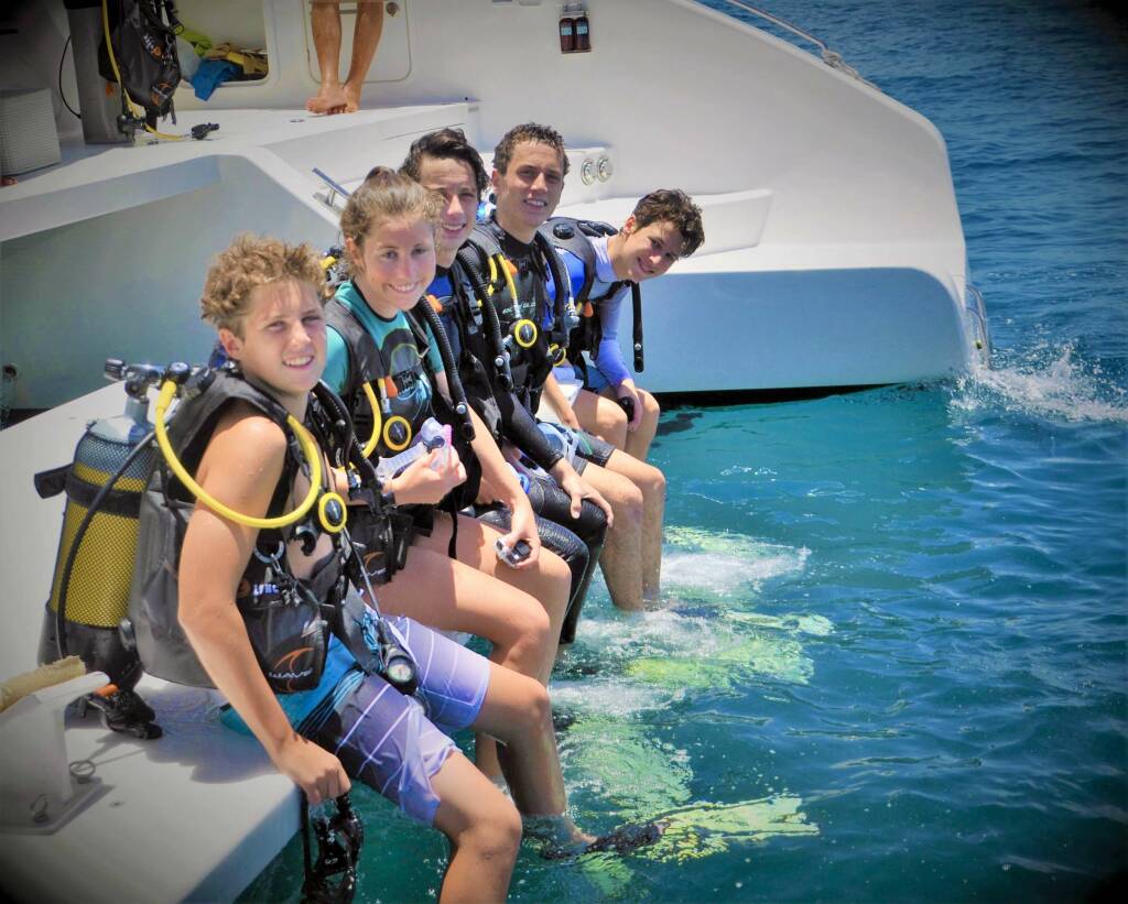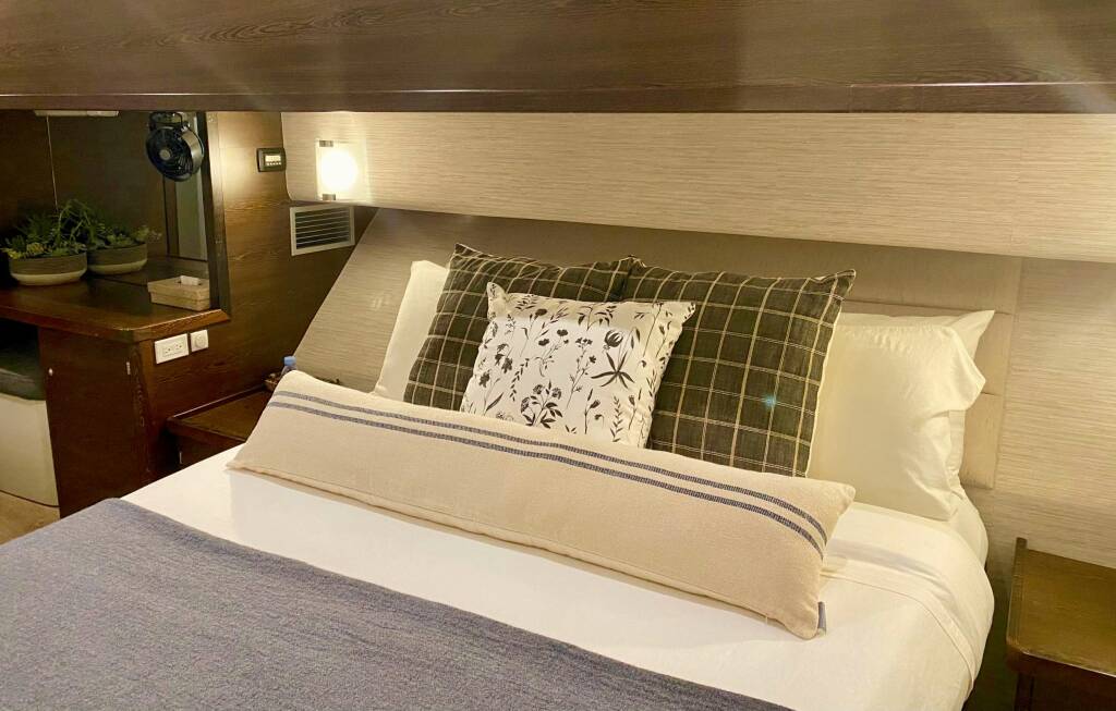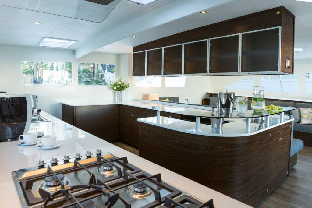 Other Toys: Tranquility features a huge aft platform between the hulls that will raise and lower the dinghy, but can also do the same for 10 divers, or allow a group to use it as a resort shelf for sitting in 6" of water in chairs, sort of bringing the beach to Tranquility! It will be similar to a "resort shelf" on a pool.