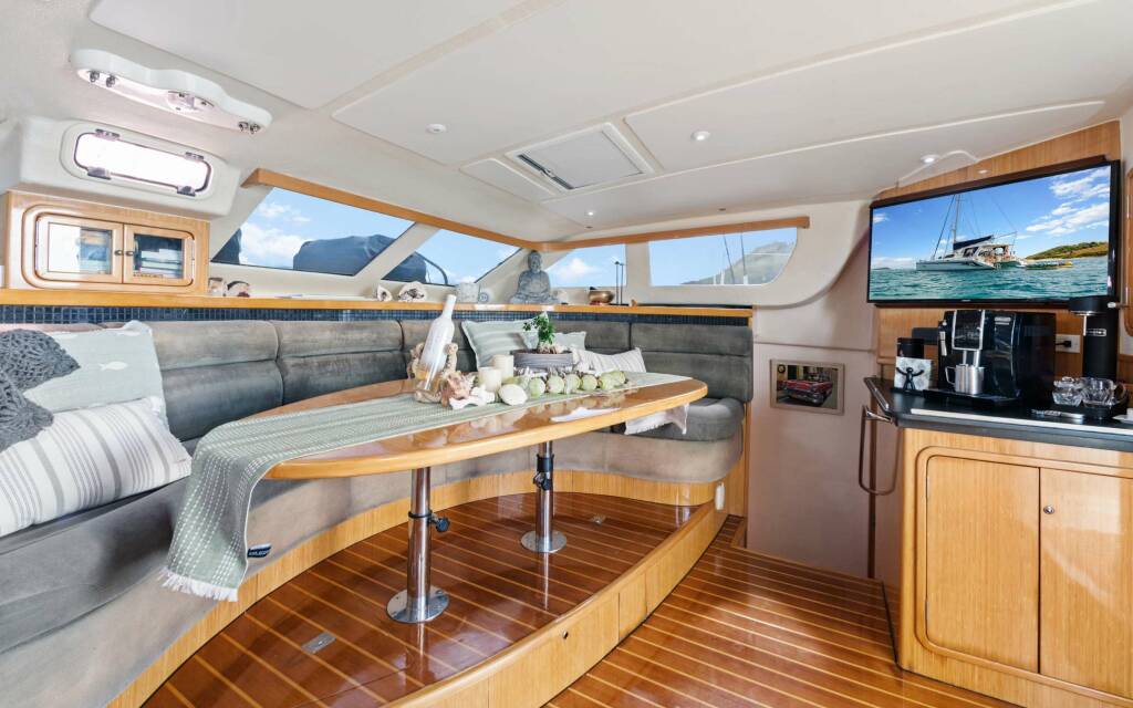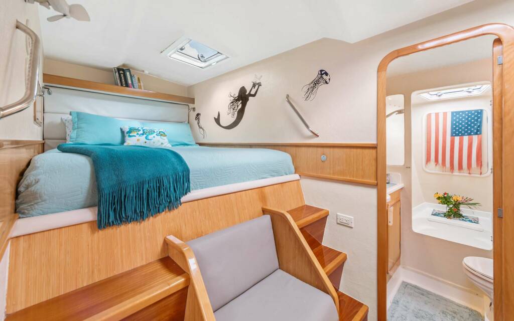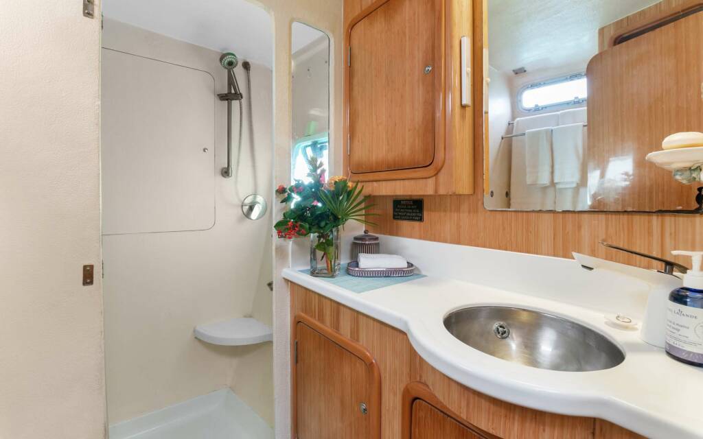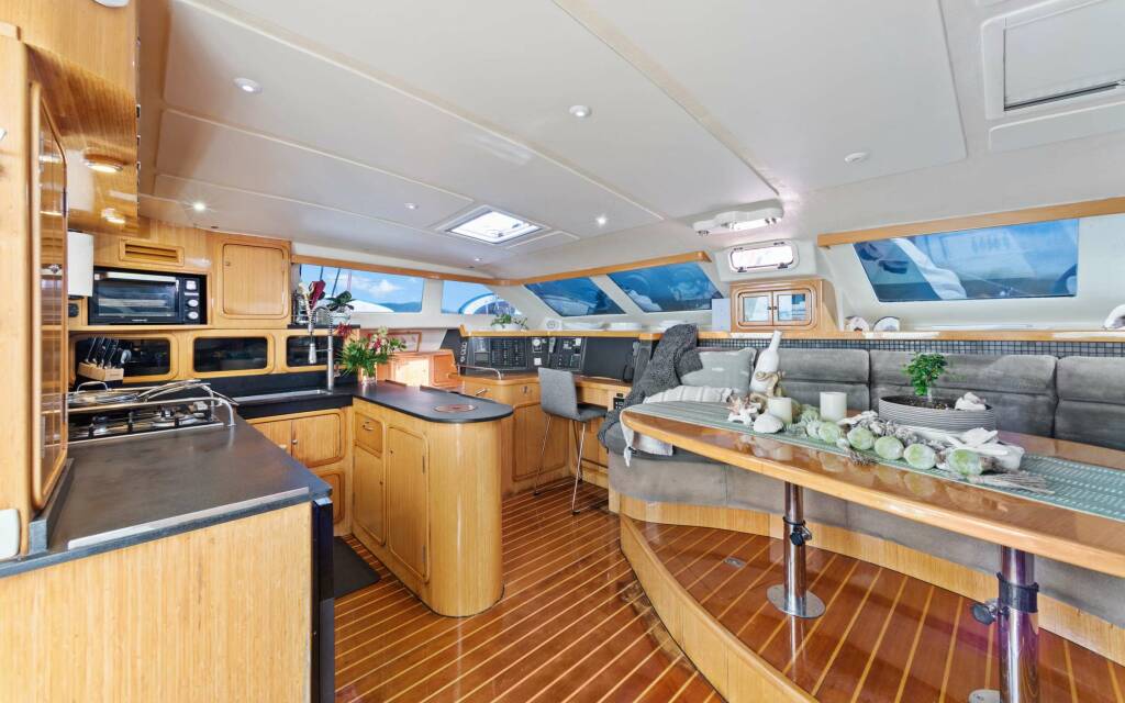 Accommodation: 1 master queen berth cabin with private ensuite head (shower, tub, electric toilet & vanity with sink), 2 queen berth cabins with private ensuite heads (shower, electric toilet & vanity with sink), 1 double berth crew cabin, with private ensuite head (shower, electric toilet & vanity with sink), large cockpit for lounging and dining, lovely main salon with galley and seating for 6 for cocktails, games or meals, large trampoline forward.