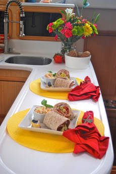 Green Other: Solar panels and new lithium ion batteries, water maker, recycle all waste where possible, eco-friendly cleaning products when possible, local and organic produce when available.