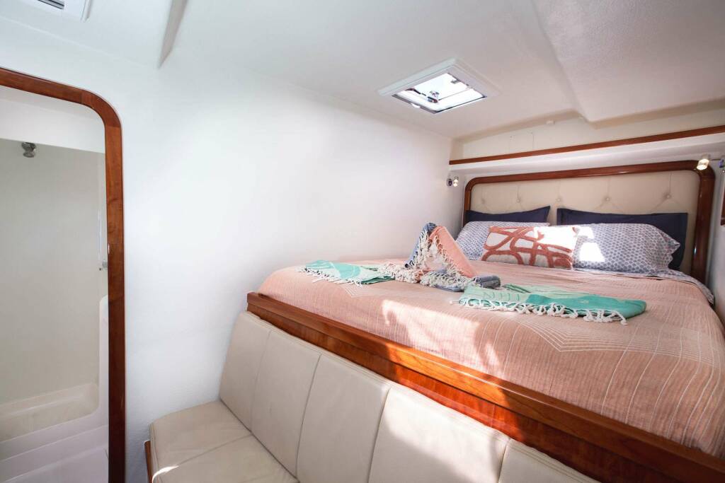 Sleep aboard the night before charter dates. Available for $450 per cabin, with a 2 cabin minimum. Includes boarding after 4pm, welcome cocktail and canapes plus a light breakfast the next morning. Dinner is to be taken ashore at client expense.