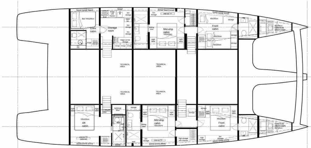 • Catamarano per ampi spazi, stabilità superiore e maggiore privacy.