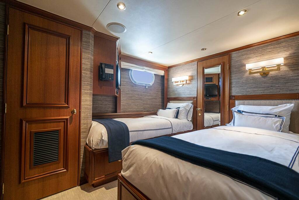 Accommodation: TRUE NORTH can accommodate 8 guests in 4 cabins. The Master cabin is centerline, below and forward and has a king size bed. The master bathroom has two heads with an adjoining shower. Two guest staterooms located just aft of the master have queen size beds with ensuite head with a shower. The fourth guest stateroom has twin beds and ensuite head with shower. Each stateroom has their individual air conditioning unit as well as TV and entertainment system. TRUE NORTH is fully air conditioned through out.