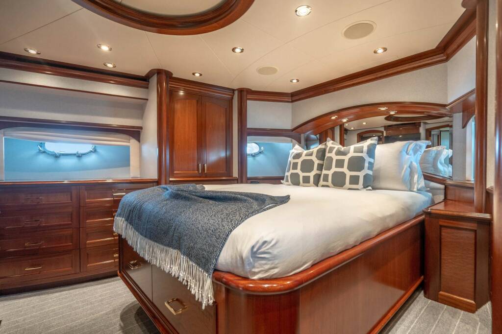 of the stairway, foyer area. The master stateroom is provided with a king size berth and spacious cabin space with a large