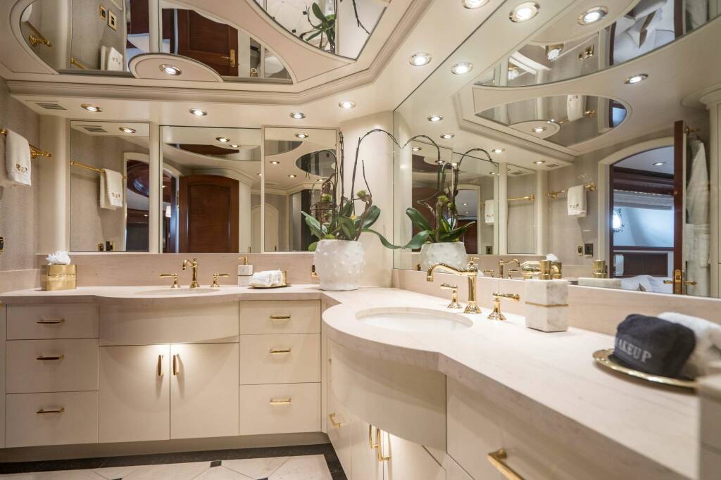 Most forward towards bow is the luxuriously accommodating VIP stateroom and head.