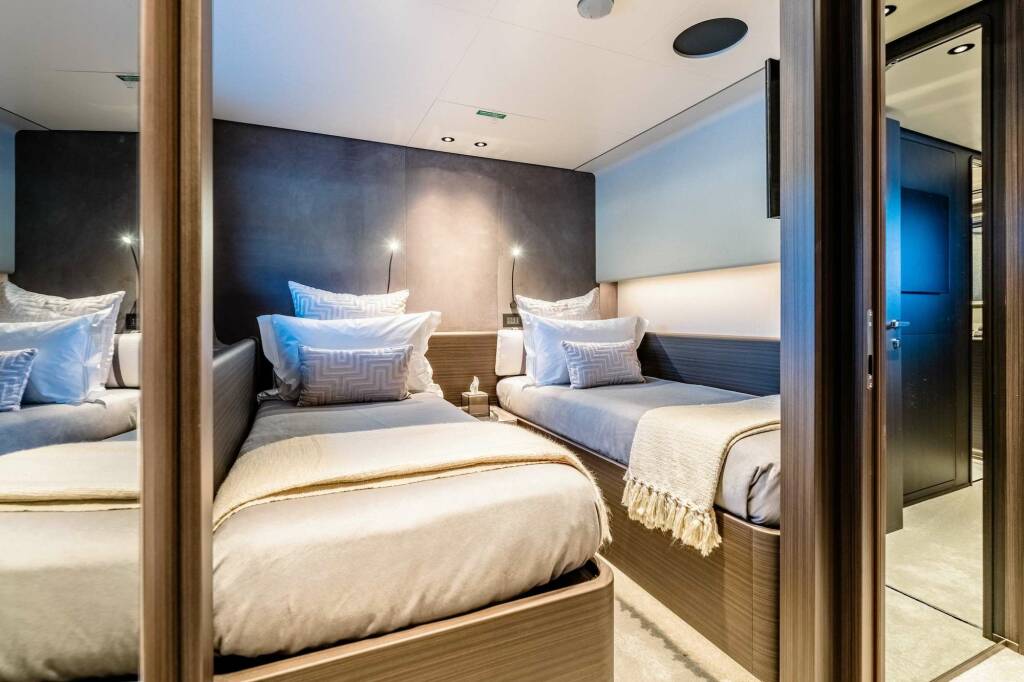 Two Twin cabins – one of which is convertible to a Queen bed on the Lower deck
