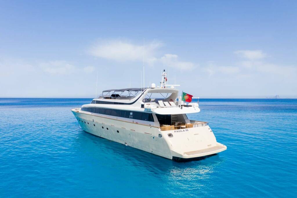 Presentiamo Paula III: Motor yacht di lusso varato nel 1998. L'allestimento interno con 5 cabine, puo' ospitare comodamente 12 ospiti.