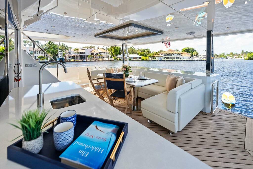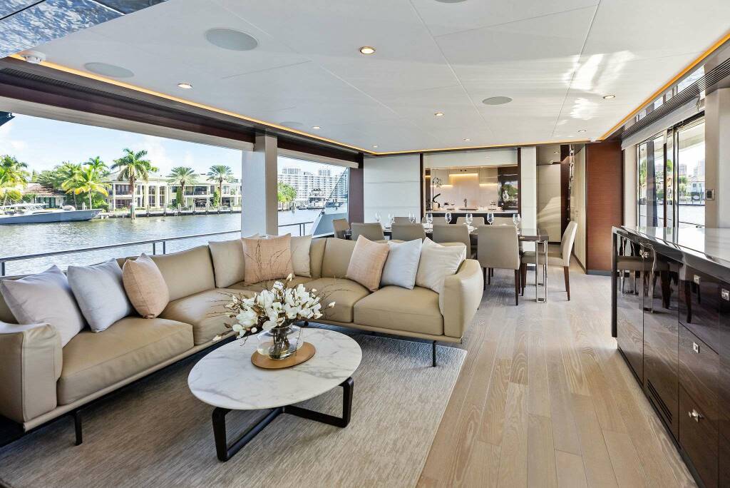 Beach club, on-deck Jacuzzi, and expansive foredeck lounge for versatile entertaining.