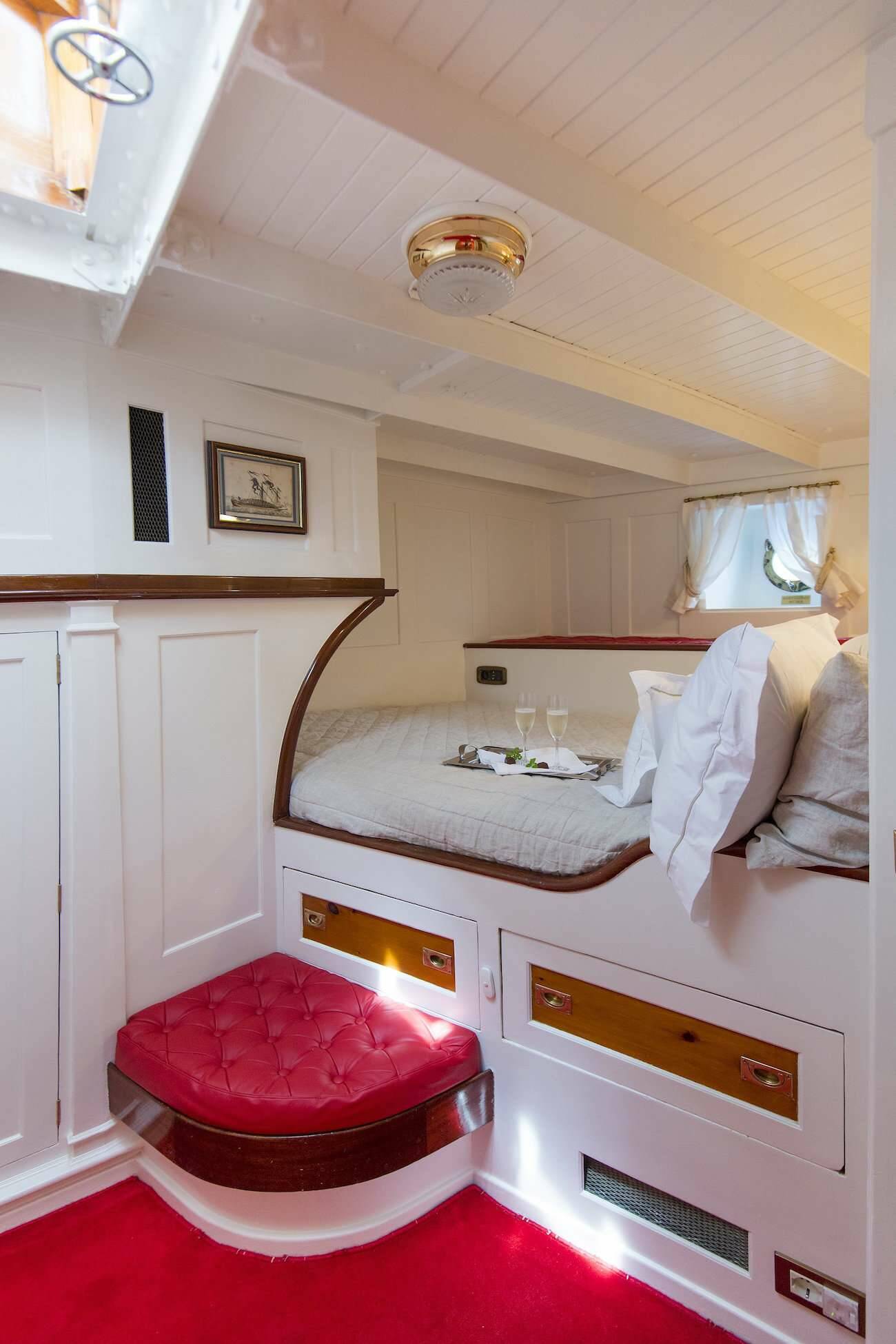 - Master Cabin: Features a double bed (190 x 138 cm), a private desk, and an en-suite bathroom.