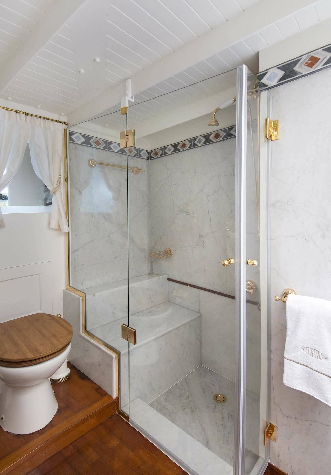 All staterooms are air-conditioned and feature opening deck hatches for natural light and ventilation. The bathrooms have been exquisitely refurbished with a selection of fine marbles and custom gold-plated taps, crafted in Florence.