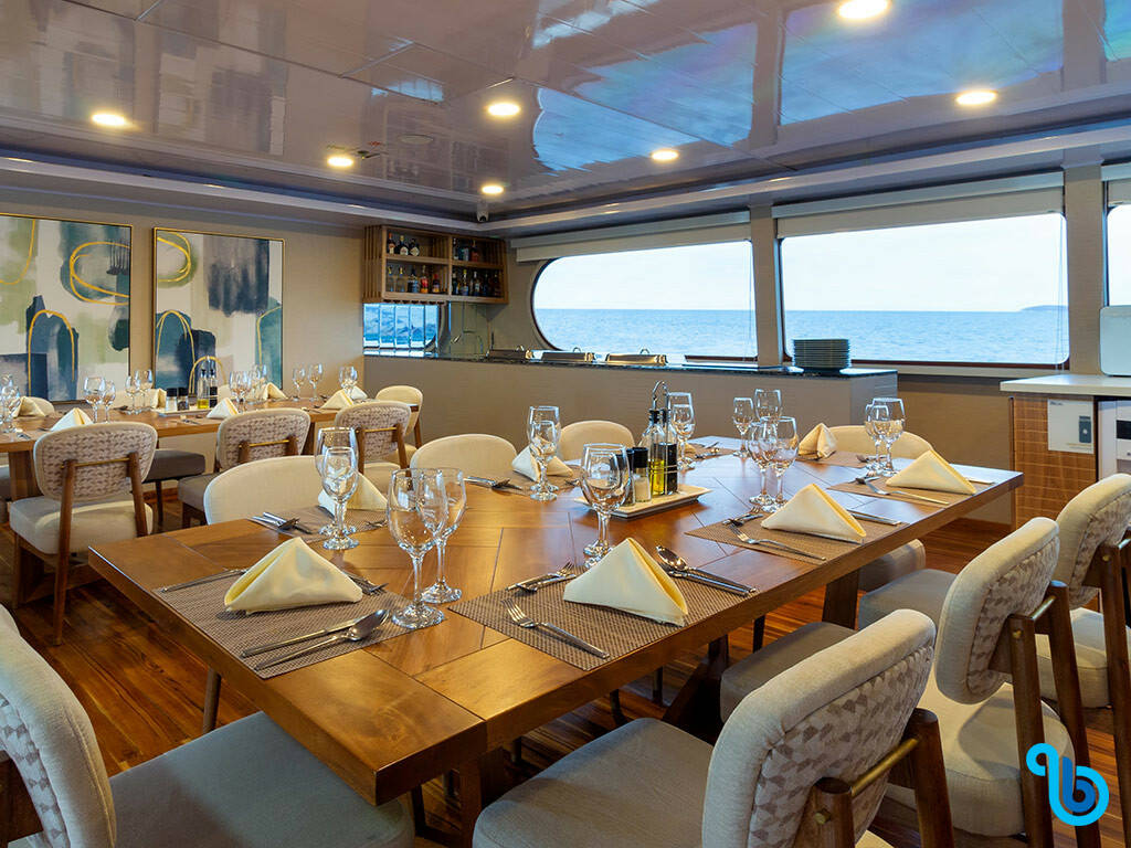 Luksusowy jacht motorowy Power Catamaran D Petrel, zbudowany w 2015 stacjonuje w Meksyk. Posiada 8 kabin, może pomieścić 16 osób.