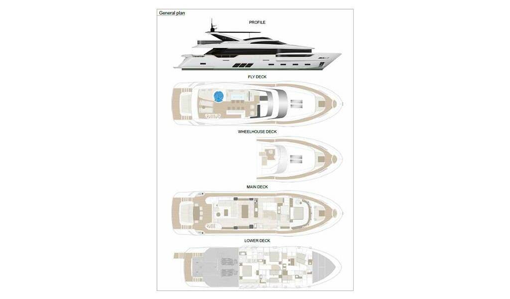 This document is not contractual. All specifications are given in good faith and offered for informational purposes only. The publisher and company does not warrant or assume any legal liability or responsibility for the accuracy, completeness, or usefulness of any information and/or images displayed. Yacht inventory, specifications and charter prices are subject to change without prior notice.