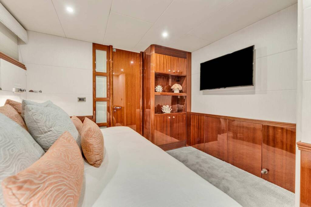 Luksusowy jacht motorowy IV Tranquility, zbudowany w 2001 stacjonuje w USA - Florida East Coast. Posiada 4 kabin, może pomieścić 8 osób.