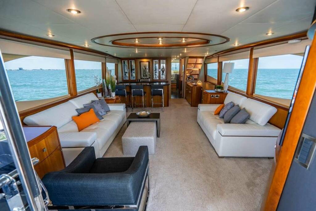 Accommodation: 4 staterooms, each with their own bathroom. The flybridge was totally re-designed, and they even added air conditioning to the outside eating area on the covered flybridge.