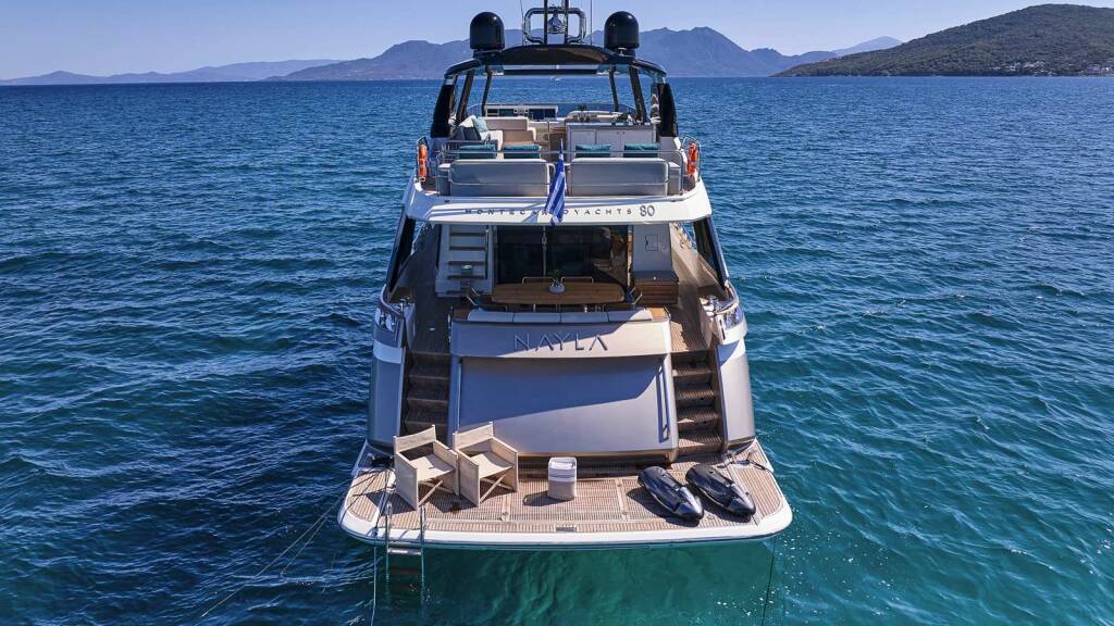Luksusowy jacht motorowy NAYLA, zbudowany w 2018 stacjonuje w Greece. Posiada 4 kabin, może pomieścić 9 osób.