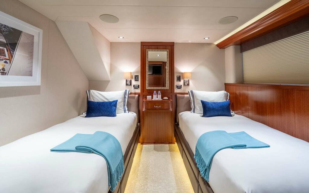 Accommodation: Featuring 5 guest staterooms for up to 10 guests including an on deck Master suite, two VIP cabins with King beds and two twin cabins on the lower deck.
