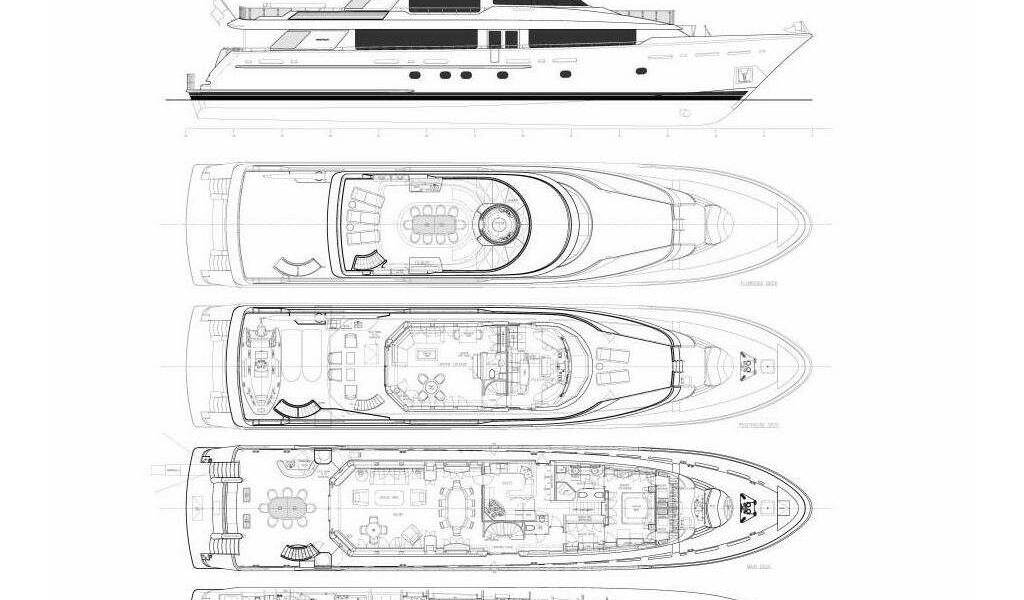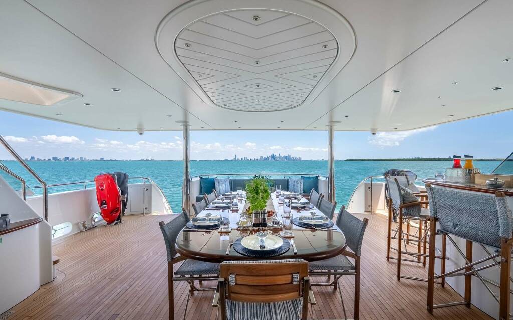 The main salon and dining is socially inviting, one of pure elegance and open plan style with formal dining for 10. A remodeled, custom designed professional galley is positioned privately to portside and with side access for crew.