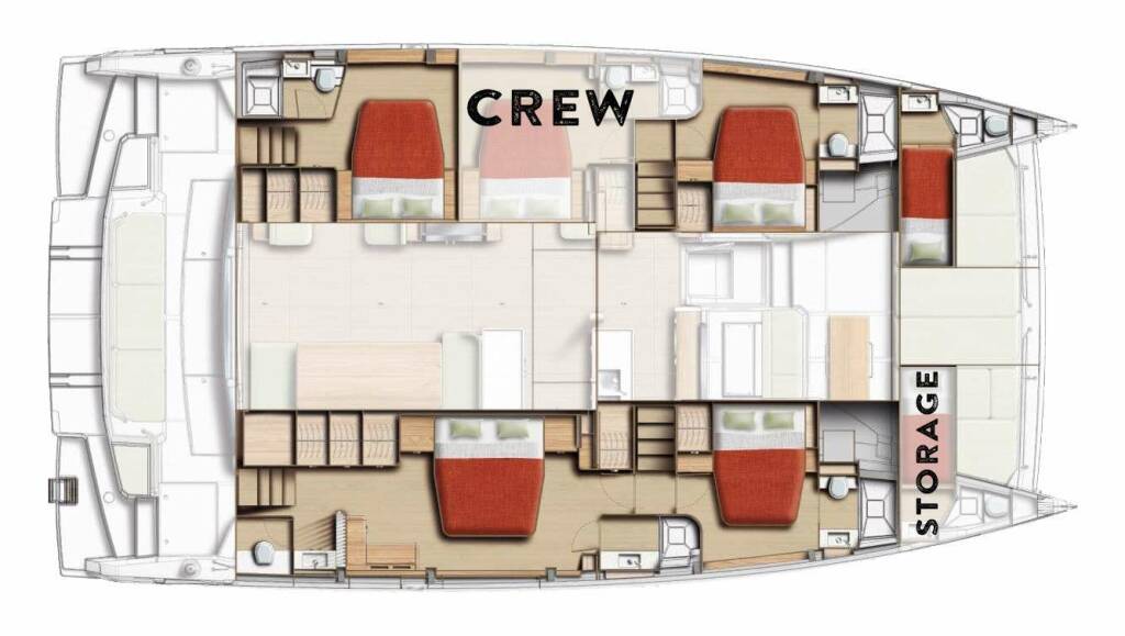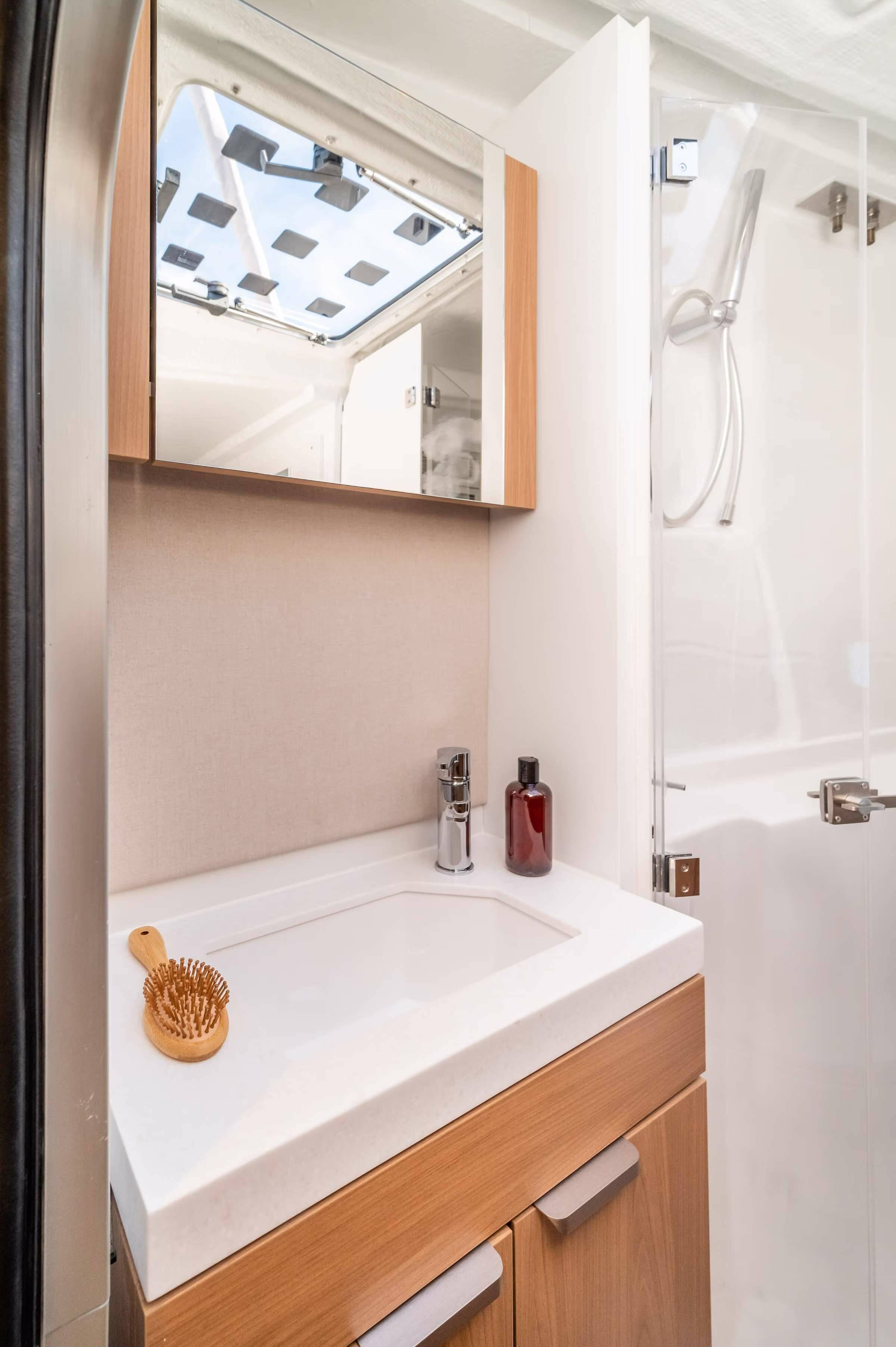 Luksusowy katamaran LOCATION 5.8, zbudowany w 2027 stacjonuje w Bahamas. Posiada 5 kabin, może pomieścić 9 osób.
