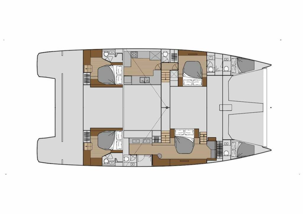 3 Double cabins with queen beds and 3 bathrooms.
