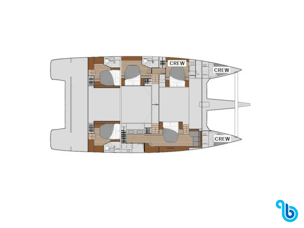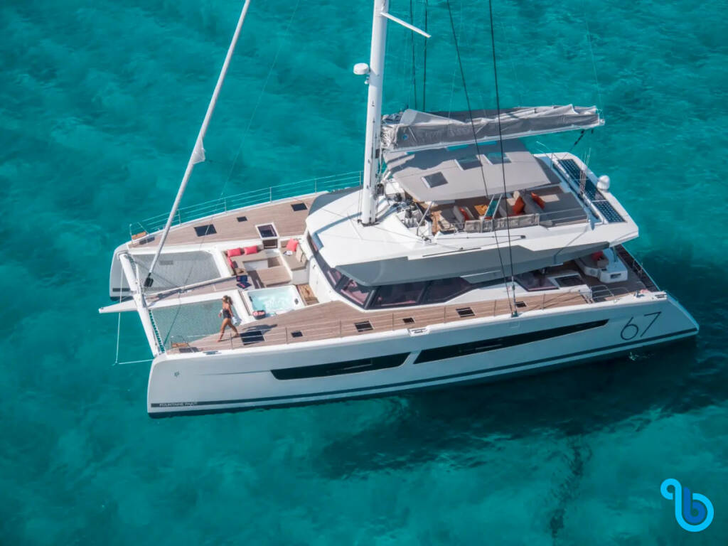 Luksusowy katamaran Alegria 67 Floramye, zbudowany w 2025 stacjonuje w Chorwacja. Posiada 4 kabin, może pomieścić 11 osób.