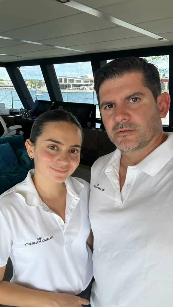 A dynamic and welcoming team, Captain Emiliano and Chef / Stewardess Daniela bring warmth, professionalism, and a refined sense of service to every charter aboard Island Majesty.