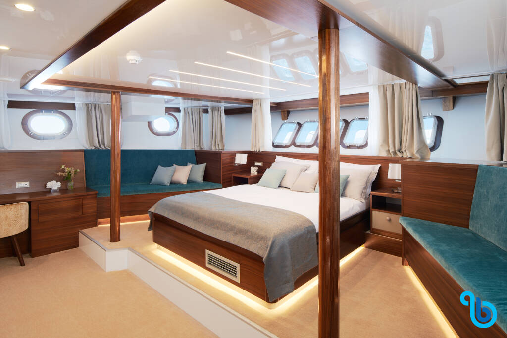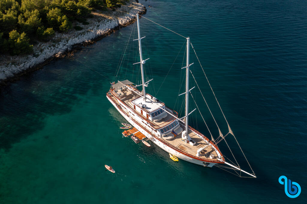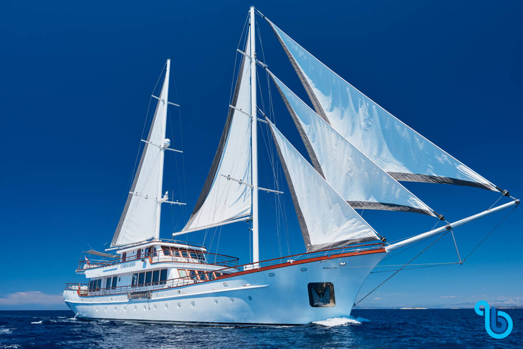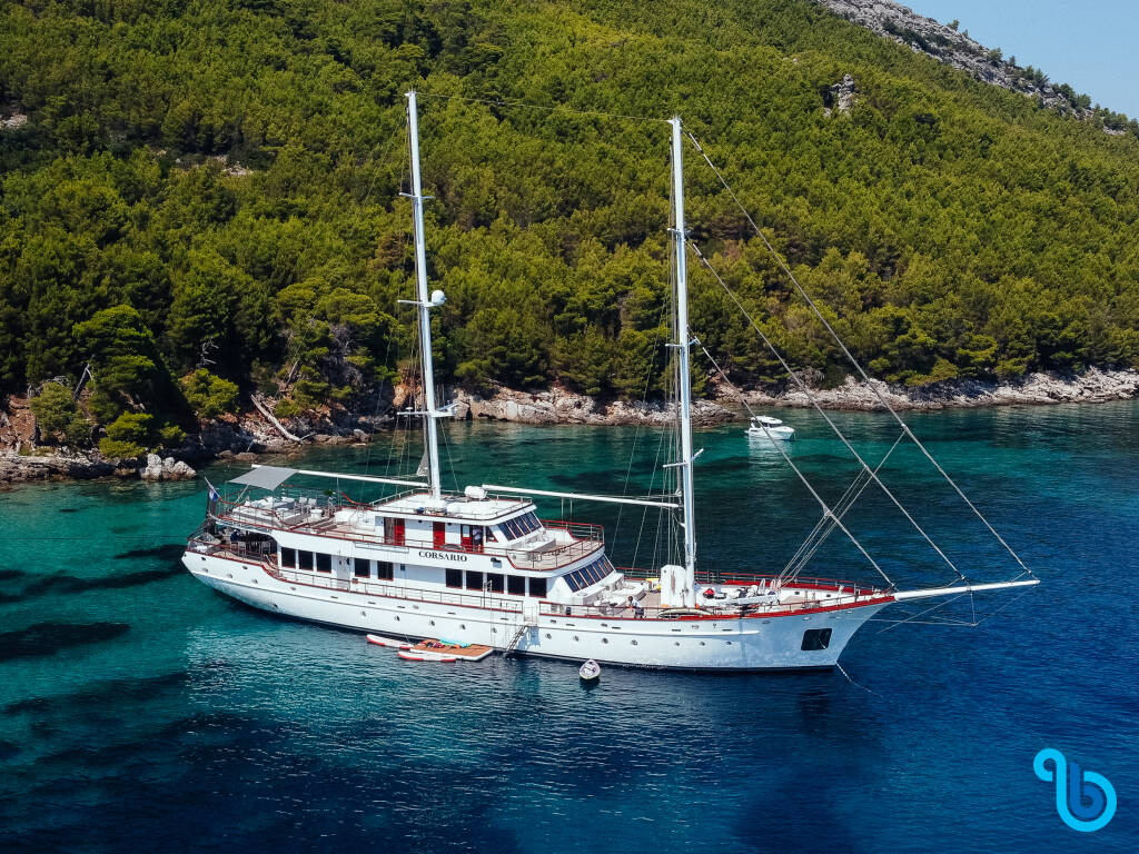 Gulet Gulet Corsario, postavená v roku 2019, kotví v Írsko. Má 6 kajút, môže ubytovať 12 osôb.