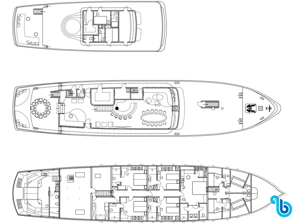 Niektoré superjachty nad 80 metrov, v súlade s medzinárodnými certifikáciami, môžu ubytovať až 36 osôb.
