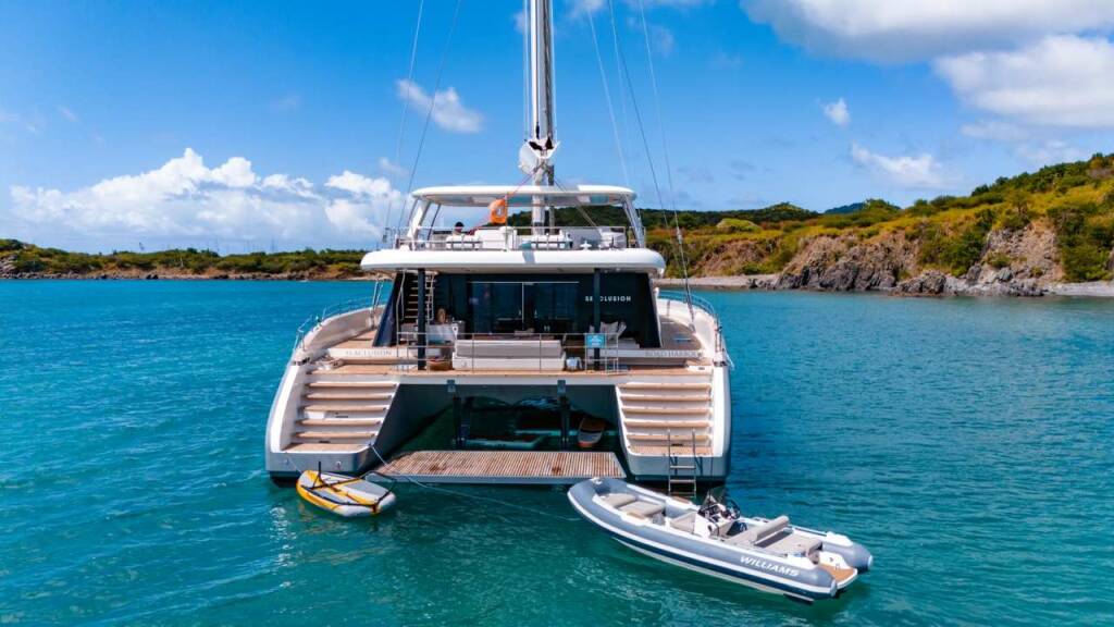 Katamarán SEACLUSION, postavená v roku 2020, kotví v Caribbean Leewards, Caribbean Windwards. Má 4 kajút, môže ubytovať 8 osôb.